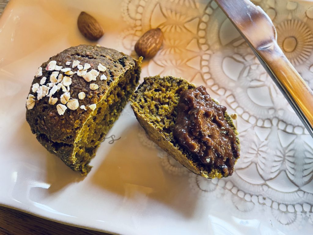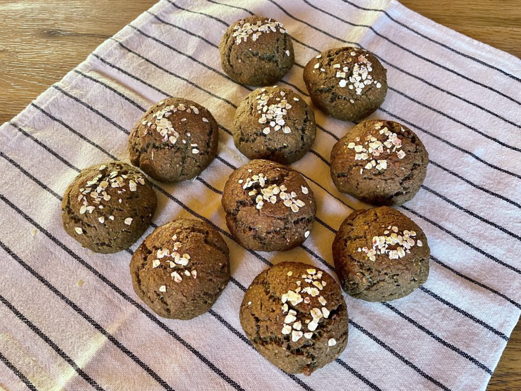 Préchauffer le four à 180′ C. Mixer une betterave cuite et refroidie de 400g avec 3 oeufs et une petite cuillère à café de sel. Rajouter 320g. de flocons d’avoine et une cuillère à café de bicarbonate de soude et mixer à nouveau. Sortir la masse et la verser dans un bol. Rajouter 1,5 cuillères à soupe de Psyllium et mélanger la masse avec une spatule. Au bout de quelques minutes les fibres du Psyllium et de l’avoine vont absorber le liquide. Se mouiller les mains et former 10 petits pains. Les saupoudrer de quelques flocons et les enfourner pendant 40min. Après cuisson, laisser refroidir les petits pains sur une grille.